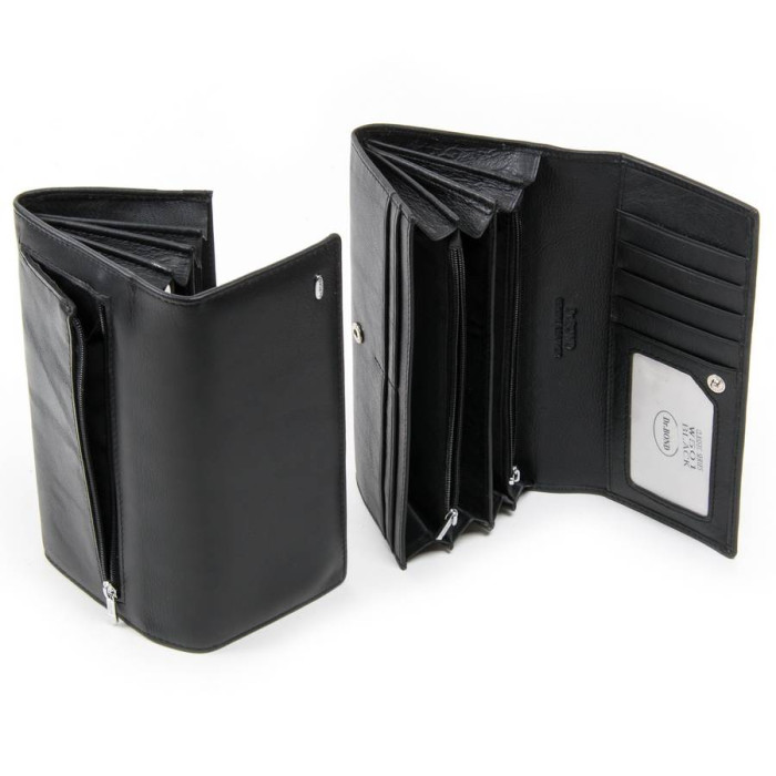 Великий полегшений шкіряний жіночий гаманець Dr.Bond. Закривається на кнопку. Усередині знаходяться 4 відділення для банкнот, дві кишені-монетниці на блискавці, велика відкрита кишеня і 9 кишень для карт і візиток. Зовні гаманця на звороті є кишеня на блискавці. Розмір (см) 18,5*9*3,5