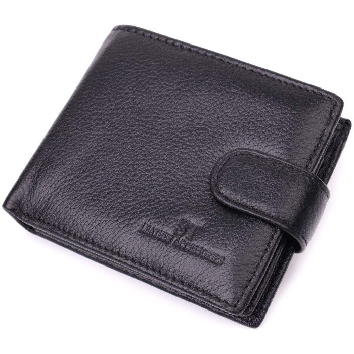Чоловіче зручне портмоне, яке прикрашене тисненням логотипу виробника на лицьовій стороні. Аксесуар з натуральної шкіри, він складається з двох відділень для купюр, кишені на блискавці, семи осередків для карт, двох прихованих кишень, кишені під плівкою та кишені для монет. Портмоне доповнено надійною фурнітурою та міцною підкладкою, закривається навпіл, хлястиком на кнопку. Шкіряний та якісний аксесуар на подарунок, це завжди дуже хороша ідея.