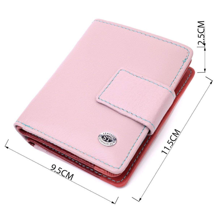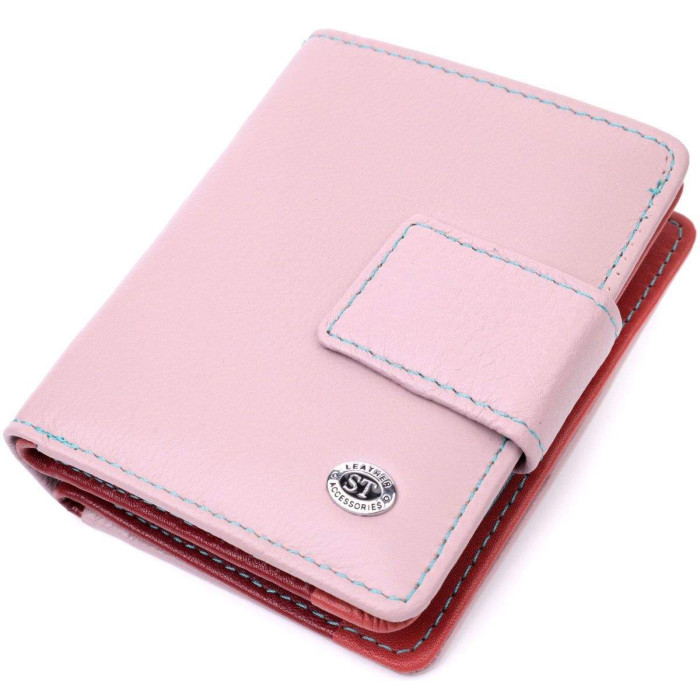Відмінне портмоне в два складання компактного розміру з натуральної шкіри найвищої якості. Гаманець бежево-рожевого кольору зовні та різнобарвний усередині, що дуже стильно та сучасно. Шкіряне портмоне дуже практичне і служить досить довго. Аксесуар складається з двох містких кишень для купюр, кишені на блискавці для монет, шести осередків для карт, двох прозорих віконець для перепусток або фотографій та двох прихованих кишень. Портмоне доповнено надійною фурнітурою і прошито по краю рівним рядком бірюзового кольору. Укомплектований гаманець у фірмову картонну коробку білого кольору. Виріб стане ідеальним подарунком для дівчини будь-якого віку.