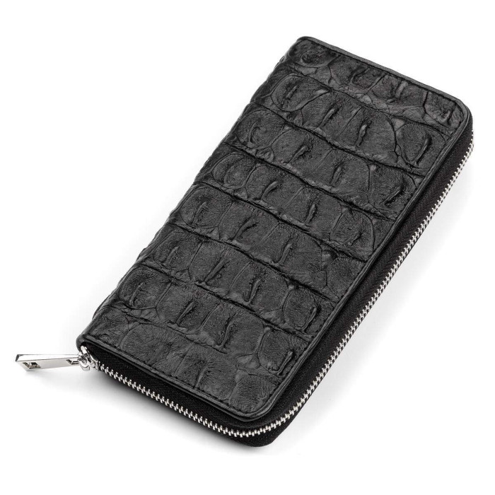 Гаманець з натуральної шкіри крокодила, кожен виріб з цього матеріалу володіє своєю незвичайною структурою і неповторним візерунком. У аксесуарі використана виключно якісна фурнітура, срібного кольору. Вироби зі шкіри крокодила завжди вважалися великою розкішшю, так як в світі не так вже й багато компаній, які займаються обробкою такої шкіри, оскільки цей процес дійсно надзвичайно трудомісткий. Ідеальний подарунок для людей, які люблять все дороге і унікальне.