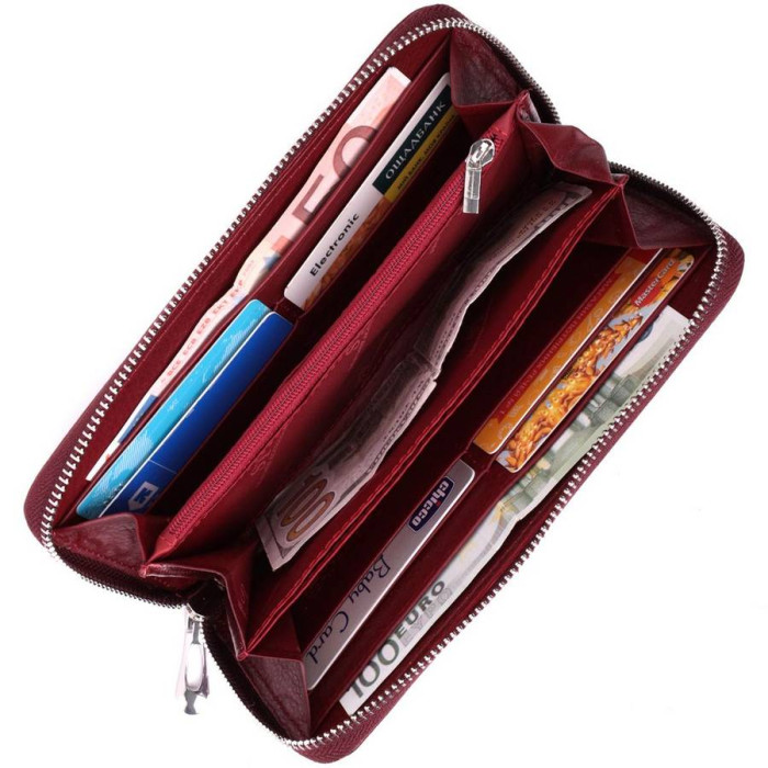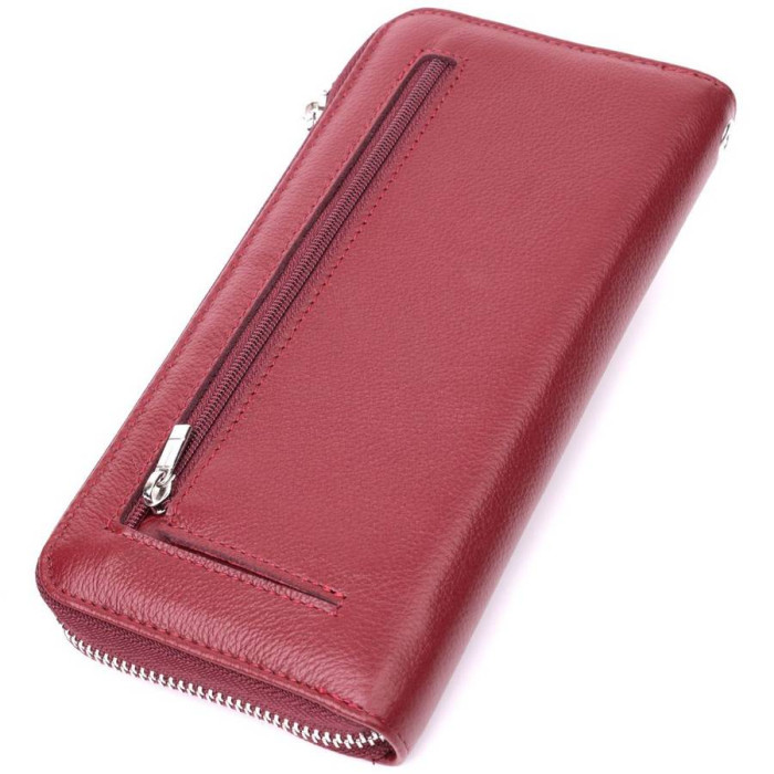 Відмінний клатч для ділової та стильної жінки з натуральної шкіри. Аксесуар має три великі відділення для купюр, вісім осередків для карток, дві прилеглі кишені, одну приховану кишеню, кишеню на блискавці та монетницю на блискавці зовні. Носити цю модель зручно в руці або за допомогою знімного кистьового ременя. Закривається аксесуар на блискавку. Купуючи шкіряний аксесуар цієї фірми собі або на подарунок, будьте певні, що він радуватиме око не один рік