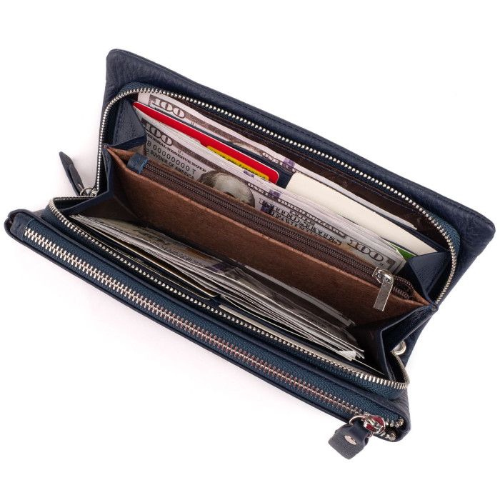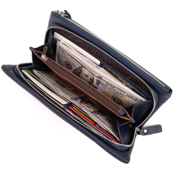 Тонкий гаманець з двох автономних частин на блискавках з нової колекції в темно-синьому кольорі. Аксесуар дуже зручно лягає в руку, приємний і м'який на дотик. Тонкі габарити аксесуара роблять модель ще більш популярною. Незважаючи на це, аксесуар має зручний функціонал: в ньому легко розташувати купюри, монети, кредитки та навіть мобільний. Виріб стане прекрасним подарунком для будь-якої дівчини. Укомплектована модель в білу картонну коробку з логотипом бренду. На нашому сайті ви знайдете аксесуар в різних колірних рішеннях - вибирайте краще для себе і оформляйте замовлення.