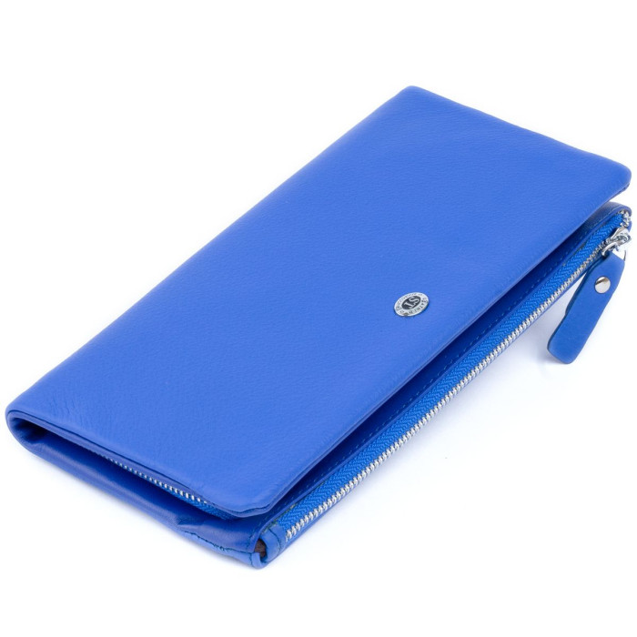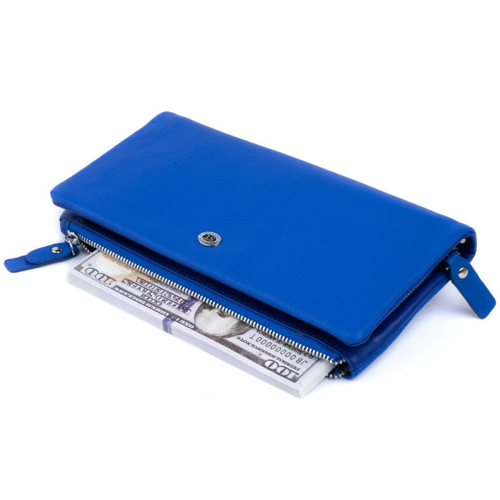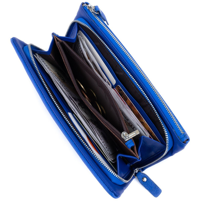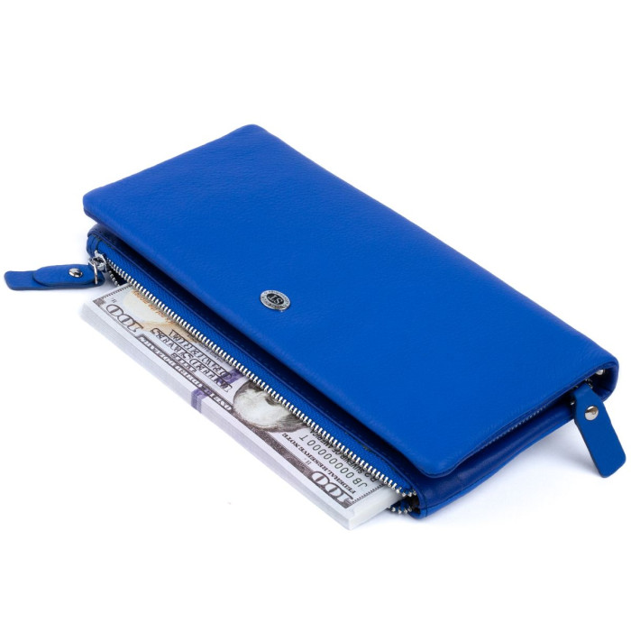 Якщо ви довго шукали гаманець в який поміщається мобільний телефон, тоді він прямо перед вами. Яскравий синій колір хвилі не може залишитися непоміченим оточуючими. Аксесуар має окрему кишеньку для мобільного на блискавки. При цьому модель тонка і має невеликі габарити. Аксесуар м'який і приємний на дотик. Клатч має слабо виражений запах натуральної шкіри. Внутрішнє оздоблення гаманця - щільний текстиль. У гаманці з легкістю ви зможете зручно розмістити всі купюри, кредитки, монети та інші особисті дрібниці. Варто відзначити, що виріб стане прекрасним подарунком для будь-якої дівчини. На нашому сайті модель представлена в різних кольорах. Замовляйте у нас за найдоступнішими цінами. Гаманець прослужить вам довгий час.