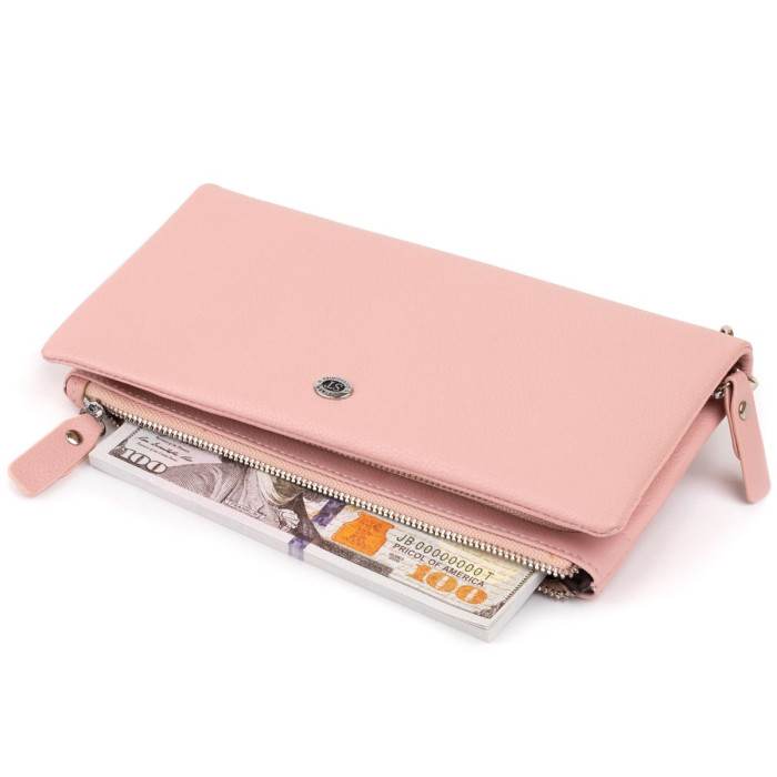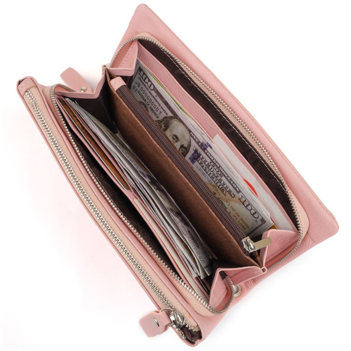 Перед вами гаманець-клатч з нової колекції. Ніжний рожевий колір буде до душі будь-якій дівчині і додасть легкості в її гардеробі. Аксесуар - незамінна річ для сучасної дівчини. Клатч дуже місткий, адже в ньому є навіть відділення для мобільного телефону. Виріб виконаний виключно з натуральної шкіри з її природною текстурою і легким запахом. Всередині - аксесуар з щільного текстилю. Внутрішні кишені просторі і ви із зручністю розмістете купюри, карти, монети та інші особисті дрібниці. Замовляйте у нас за найдоступнішими цінами. Гаманець прослужить вам довгий час.
