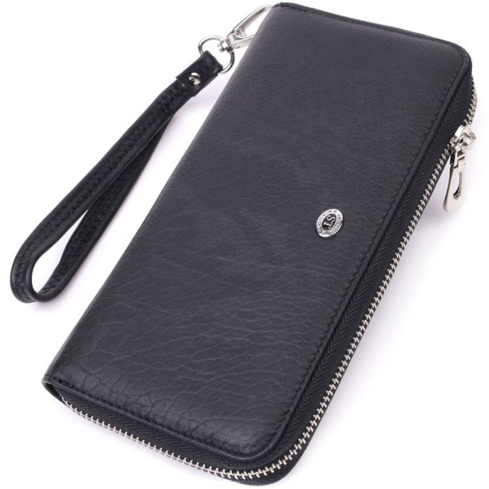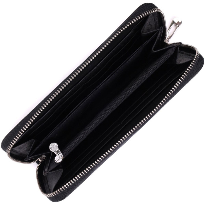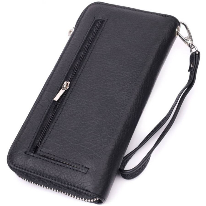 Відмінна шкіряна модель клатча, з металевим логотипом виробника, на лицьовій стороні, яка підійде як чоловікові, так і жінці. Аксесуар має три великі відділення для купюр, вісім осередків для карток, дві прилеглі кишені, одну приховану кишеню, кишеню на блискавці та монетницю на блискавці зовні. Носити цю модель зручно в руці за допомогою ременя, що знімається. Закривається аксесуар на блискавку. Купуючи шкіряний аксесуар цієї фірми собі або на подарунок, будьте певні, що він радуватиме око не один рік.