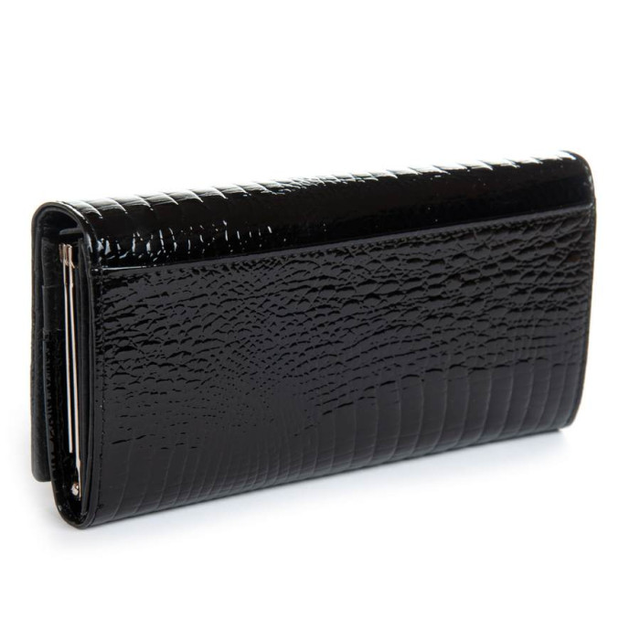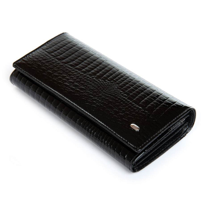 Зовнішня частина - рельєфна лакова шкіра серії Croco, внутрішня частина - натуральна м'яка шкіра. Всередині знаходяться 3 відкритих відділення для банкнот, велика кишеня на блискавці, подвійна кишеня-монетниця на засувці, одна велика відкрита кишеня і 8 кишень для візитних карток. Зовні гаманця на зворотному боці є відкрита плоска кишеня.