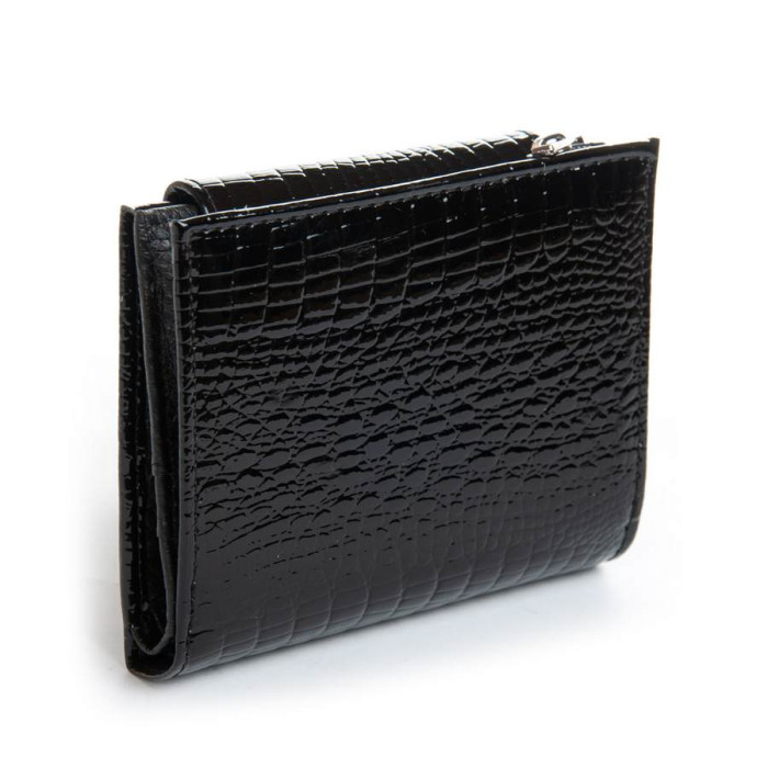 Зовнішня частина - рельєфна лакова шкіра серії Croco, внутрішня частина - натуральна м'яка шкіра. Всередині знаходяться 2 відкритих відділення для банкнот, 3 великих відкритих кишені, 11 кишень для візитних карток (одна з них прозора). Зовні гаманця на торці є кишеня-монетниця на блискавці.