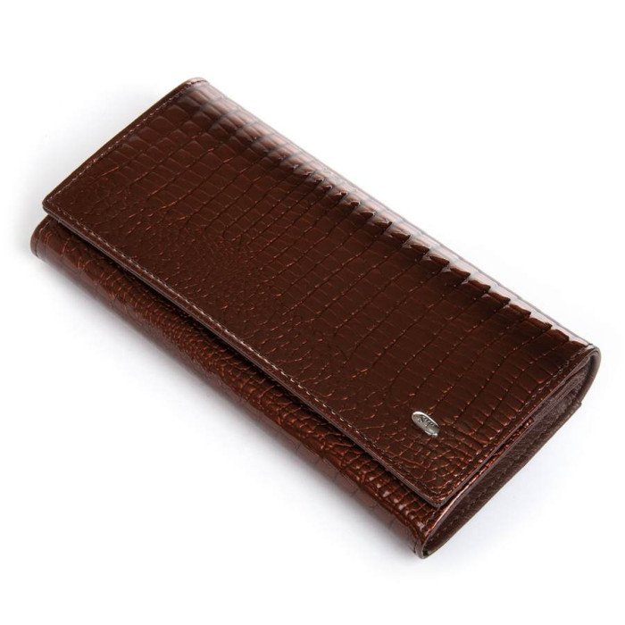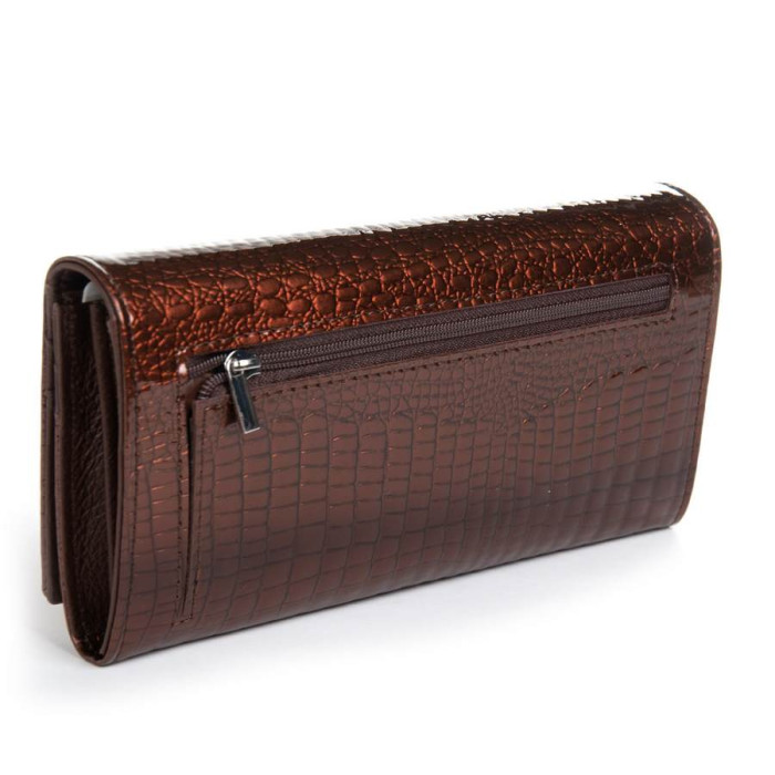 Зовнішня частина - рельєфна лакова шкіра серії Croco, внутрішня частина - натуральна м'яка шкіра. Всередині знаходяться 4 відкритих відділення для банкнот, дві кишені-монетниці на блискавці, одна велика відкрита кишеня, 8 кишень для візитних карток. Зовні гаманця на зворотному боці є кишеня на блискавці.