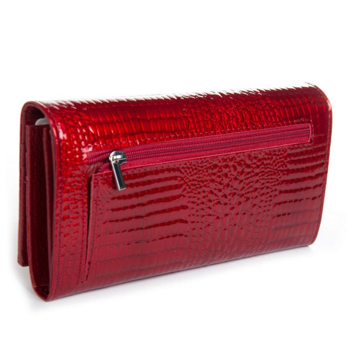 Зовнішня частина - рельєфна лакова шкіра серії Croco, внутрішня частина - натуральна м'яка шкіра. Всередині знаходяться 4 відкритих відділення для банкнот, дві кишені-монетниці на блискавці, одна велика відкрита кишеня, 8 кишень для візитних карток. Зовні гаманця на зворотному боці є кишеня на блискавці.