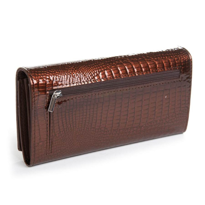 Зовнішня частина - рельєфна лакова шкіра серії Croco, внутрішня частина - натуральна м'яка шкіра. Всередині знаходяться 4 відкритих відділення для банкнот, дві кишені-монетниці на блискавці, одна велика відкрита кишеня, 9 кишень для візитних карток (одна з них прозора). Зовні гаманця на зворотному боці є кишеня на блискавці.