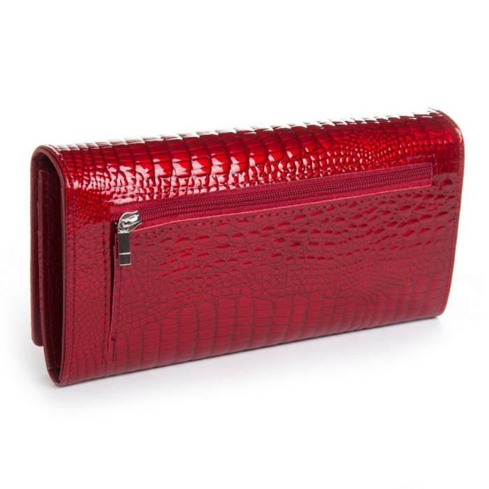 Зовнішня частина - рельєфна лакова шкіра серії Croco, внутрішня частина - натуральна м'яка шкіра. Всередині знаходяться 4 відкритих відділення для банкнот, дві кишені-монетниці на блискавці, одна велика відкрита кишеня, 9 кишень для візитних карток (одна з них прозора). Зовні гаманця на зворотному боці є кишеня на блискавці.