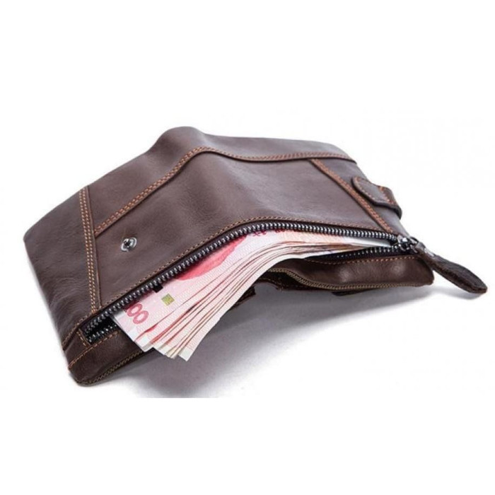 Функціональний гаманець компактного розміру з натуральної шкіри. Аксесуар м'який на дотик і не примхливий у використанні. Легко поміститься в сумку. Модель закривається на хлястик з кнопкою і виглядає дуже гарно. Пошиття моделі на високому рівні. Вам варто купити таку модель, якщо ви любите функціональні гаманці і втомилися збирати всі свої картки по сумці. Якщо ви вибираєте гаманець на подарунок, зверніть увагу на цю модель. З таким подарунком ви точно вгадаєте. Гаманець упакований в тканинний мішок від забруднень, пошкоджень і пилу.