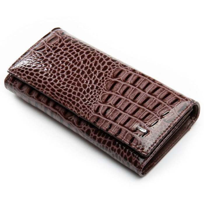 Великий шкіряний класичний жіночий гаманець DR. BOND серії Croco. Виготовлений з лакової шкіри. Закр..