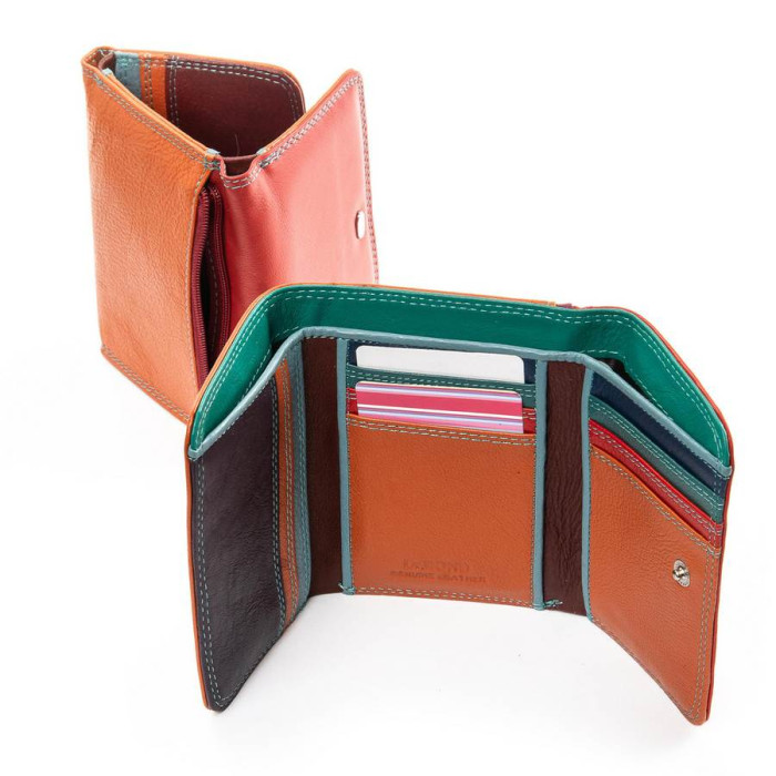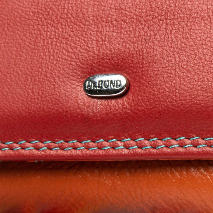 Комплектний жіночий гаманець Dr.Bond. Виготовлений із натуральної м'якої шкіри з природною текстурою. Складається втричі та закривається на кнопку. Усередині знаходяться два відкриті відділення для банкнот, розділені шкіряною перегородкою, 8 кишень для візитних карток і 3 відкриті кишені. Зовні гаманця на звороті є монетниця на блискавці.