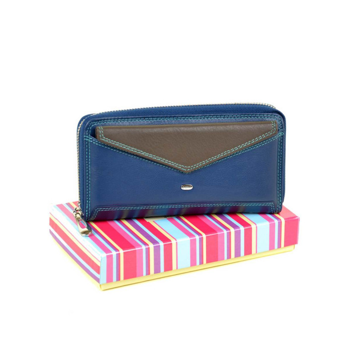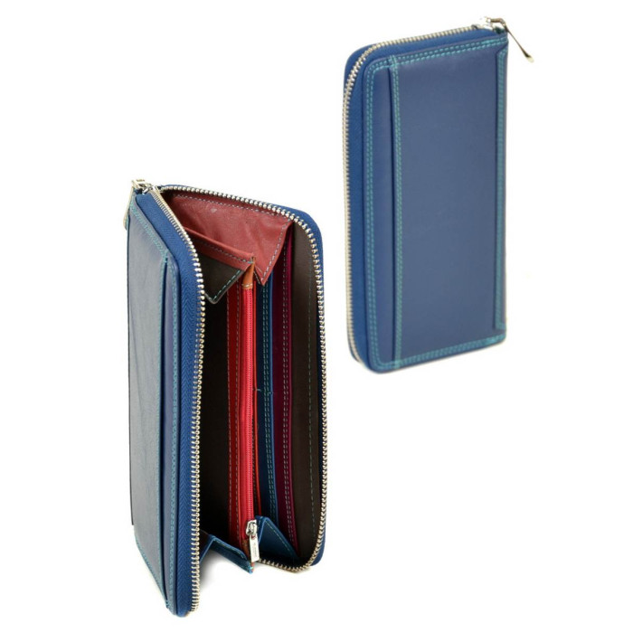 Великий жіночий шкіряний гаманець-клатч Dr.Bond. Закривається на блискавку. Всередині є два відділення, розділені кишенею-монетницею на блискавці, 2 великих відкритих кишені і 12 кишень для візитних карток. На фасаді гаманця є кишеня в якійвкладено маленький знімний гаманець на одне відділення (закривається на кнопку). Зовні гаманця на звороті є велика відкрита кишеня. Розмір (см) 19*10*3; знімний гаманець 17*8*1