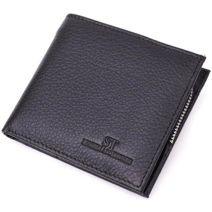 Цікавий чоловічий гаманець з оригінальною монетницею для ділових чоловіків. Аксесуар з натуральної шкіри, він складається з одного відділення для купюр, кишені на блискавці, однієї кишені під плівкою, десяти осередків для карт, двох прихованих кишень та кишені для монет. Портмоне доповнено надійною фурнітурою та міцною підкладкою. Запакований гаманець у фірмову картонну коробку білого кольору.