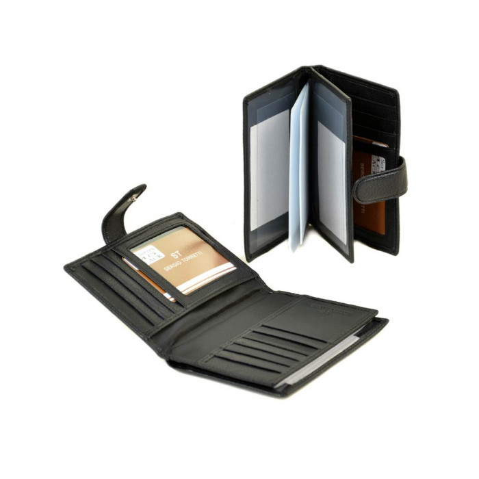 Чоловічий правник Sergio Torretti (ST). Зовнішня частина штучна шкіра, внутрішня частина - натуральна шкіра. Відділення для документів, для прав старого зразка. Другий розворот для візитних карток (10 кишень). Розмір (см) 10*14*2