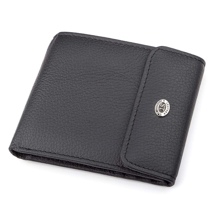 Гаманець має надійну фіксацію кнопкою. Внутрішнє оздоблення виконано з двома відділеннями для грошових банкнот, одне з яких закривається блискавкою, інше має відкритий тип. Виріб оснащений слотами для банківських карт, кишенею для зберігання монет та інших невеликих предметів, що закривається. На лицьовій стороні зображений брендовий знак і лаконічний рядок по краю. Виготовлений аксесуар з натуральної свинячий та телячої шкіри в комбінації з текстильною підкладкою. Матеріали, з яких виконано виріб, міцні, зносостійкі.