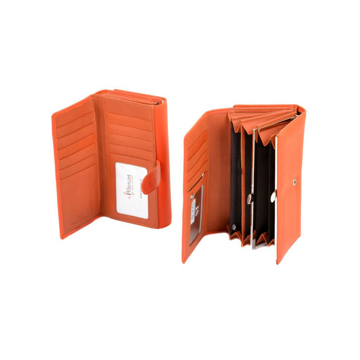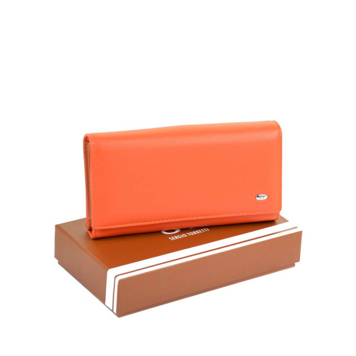 Великий жіночий гаманець Sergio Torretti. Зовнішня частина штучна шкіра, внутрішня частина - натуральна шкіра. Закривається на кнопку. Всередині 3 відкритих відділення для банкнот, кишеня-перегородка на блискавці, подвійна монетниця на защіпку, 5 кишень для візитних карток, один із яких прозорий, і один велика відкрита кишеня. Зовні гаманця, на звороті, додатковий блок, у якому розташовано 11 кишень для карт, один з яких прозорий, і 1 велика відкрита кишеня. Розмір (см) 17*9,5*4