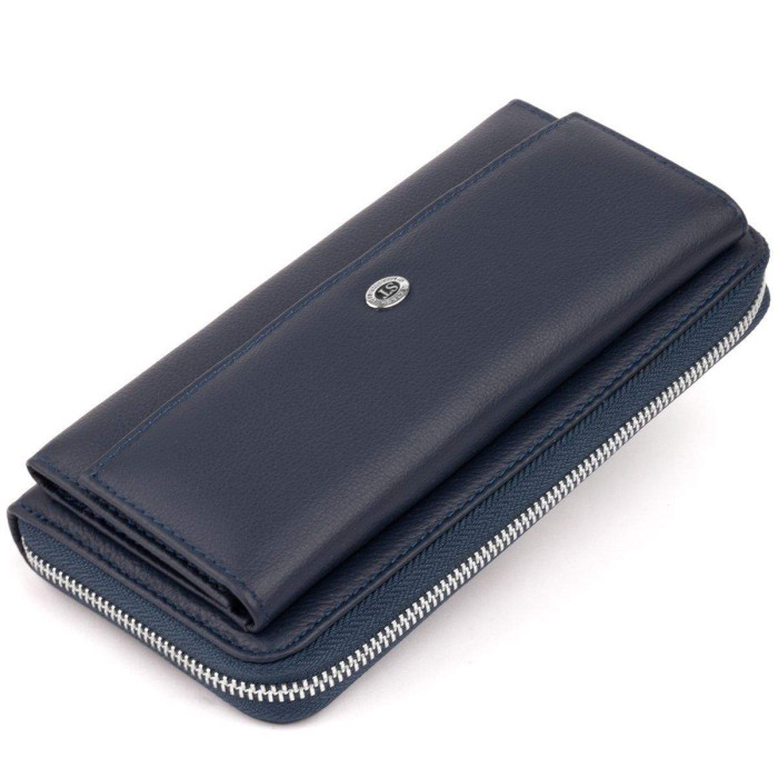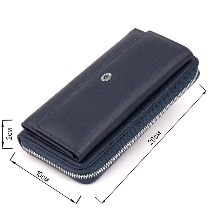 Найзручніший і найголовніше місткий жіночий гаманець. Виконана модель в темно-синьому приглушеному кольорі з натуральної м'якої та еластичноїшкіриі. В моделі дві автономних частини (під купюри і друга під кредитки). Гаманець ви можете носити як клатч за допомогою ремінця на зап'ясті. Його сучасний і продуманий дизайн не залишить вас байдужими. З таким виробом ви можете бути впевнені, що купюри не помнуться і будуть в повному порядку. Варто відзначити, що в моделі досить відділень, щоб розкласти все гроші картки і навіть вмістити телефон. Усередині виріб виготовлений з натуральної шкіри в поєднанні з щільним текстилем. Гаманець упакований в фірмову картонну коробку білого кольору. Рекомендуємо вам дану модель, якщо ви перебуваєте в пошуку подарунка для дівчини.