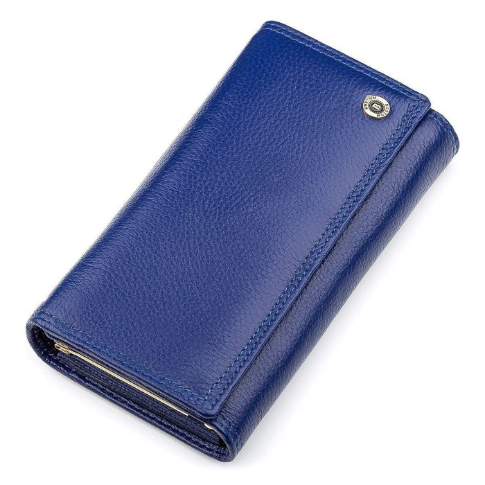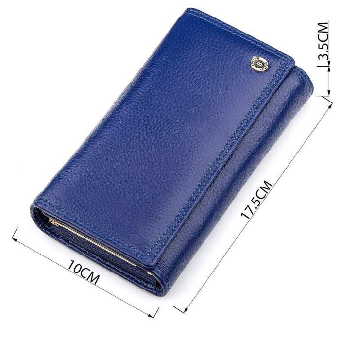 Дана модель гаманця для жінок оформлена в синьому кольорі і прикрашається круглим значком золотистого кольору, розташованим на лицьовій частині. Крім стандартного функціоналу з декількома кишенями, відділеннями та слотами, є також додатковий блок, який знаходиться всередині. При розвороті забезпечується прекрасний і швидкий доступ до вмісту, а також порадує велика монетниця. Вибір і придбання якісних виробів в нашому інтернет-магазині пройде просто і зручно, а широкий асортимент товарів дозволить кожному бажаючому знайти необхідний аксесуар.
