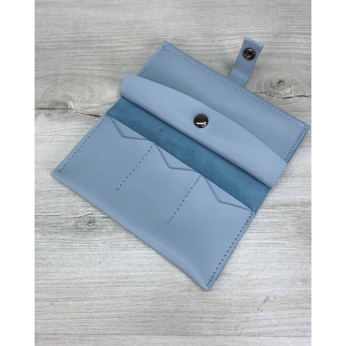 Жіночий гаманець WeLassie блакитного кольору, виготовлений з штучної шкіри високої якості. Гаманець м'який, поділений на чотири відділи: для купюр, візиток, дрібниці. Відділ для купюр знаходиться під відділом візиток і під відділом для дрібниці.