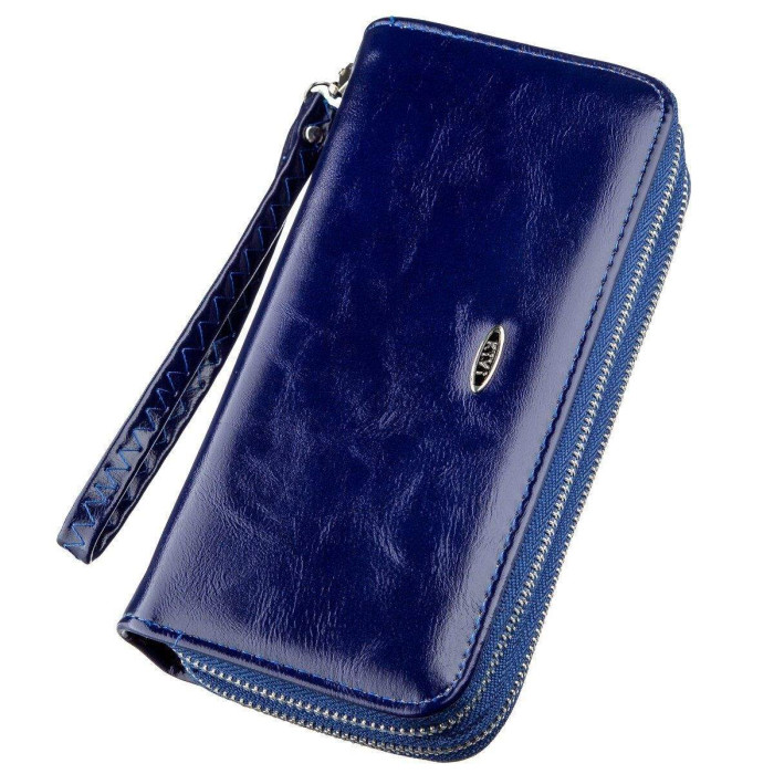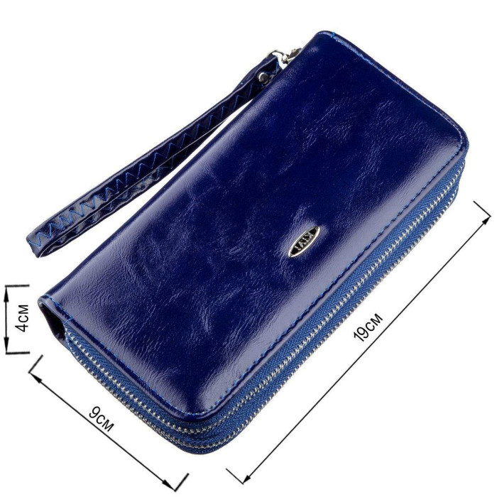 Спокійний синій колір гаманця дуже практичний і при цьому має особливу родзинку. Ви можете носити цю модель як в сумочці, так і на зап'ясті за допомогою відповідного ремінця. Аксесуар не вибагливий у догляді. Модель має достатньо місця для купюр, карток і дрібниць. Усередині аксесуар виконаний з екошкіри в поєднанні з міцним текстилем.