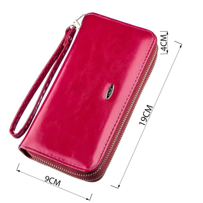 Чудовий клатч на дві блискавки насиченого рожевого кольору. Клатч ви можете носити як в сумочці, так і в руках за допомогою ручки на зап'ясті, яка йде в комплекті. На лицьовій стороні аксесуара розташований металевий логотип бренду. Матеріал, з якого виконаний гаманець - міцний шкірозамінник. Гаманець дуже доступний і при цьому досить якісний. Виріб буде хорошим подарунком для будь-якої дівчини.