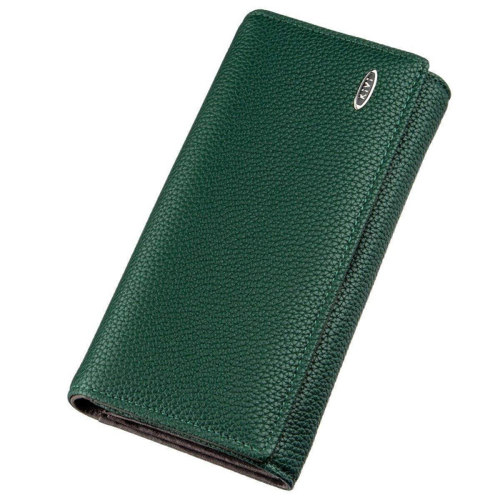 Зелений жіночий гаманець з екошкіри з дрібним зернистим тисненням. Аксесуар дуже м'який і приємний на дотик. Модель дуже легка. Виріб має хороший вигляд і з легкістю підкреслить вашу індивідуальність. Усередині аксесуара підкладка в поєднанні коричневої екошкіри і міцного текстилю. Виріб закривається на клапан з магнітною кнопкою. Гаманець буде прекрасним подарунком для будь-якої дівчини, а ціна і якість вас приємно здивують.