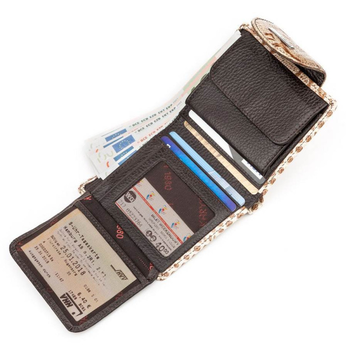 Стильний жіночий гаманець, з фактурної натуральної шкіри під рептилію. Дуже стильний і компактний аксесуар, який підійде жінці, яка цінує зручність і якість. Відмінна ідея для подарунка, яка не залишить байдужою жодну жінку.
