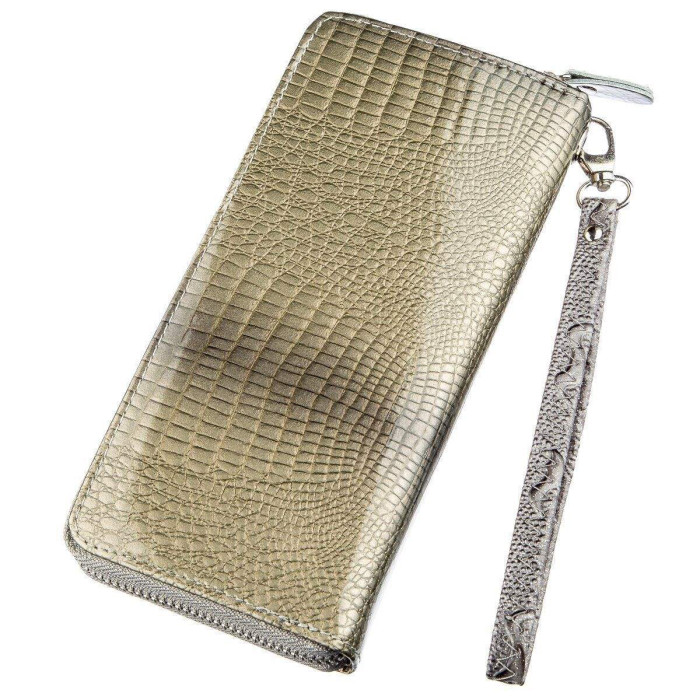 Дана модель оригінального сірого кольору. Родзинкою моделі є те, що аксесуар переливається на сонці. Виріб має оптимальний функціонал для кожної дівчини. У комплекті до гаманця йде ремінець-петелька на зап'ястя. Сірий гаманець виділить вас з натовпу і підкреслить ваше почуття стилю. Аксесуар виконаний з екошкіри. Усередині виріб виготовлений з екошкіри і міцного текстилю. Якщо ви шукаєте доступний гаманець радимо придивитися до цієї моделі.