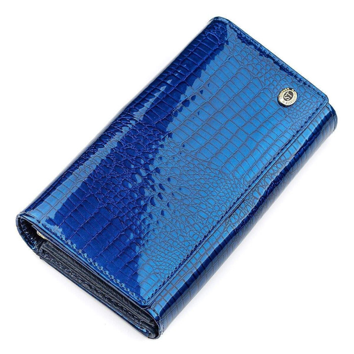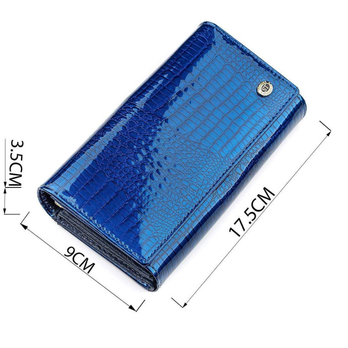 Представлений гаманець має прекрасний дизайн, оформлений в синьому кольорі, має якісну фурнітуру золотистого відтінку і достатню місткість при середніх розмірах. Зручно можна розташувати не тільки паперові банкноти, але і 14 платіжних карток, а для монет і невеликих цінних речей є містке відділення на застібці і відділення на блискавці. Вироблений виріб з натуральної екологічної шкіри, додатково оснащується красивою фірмовою коробкою.