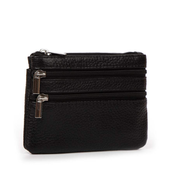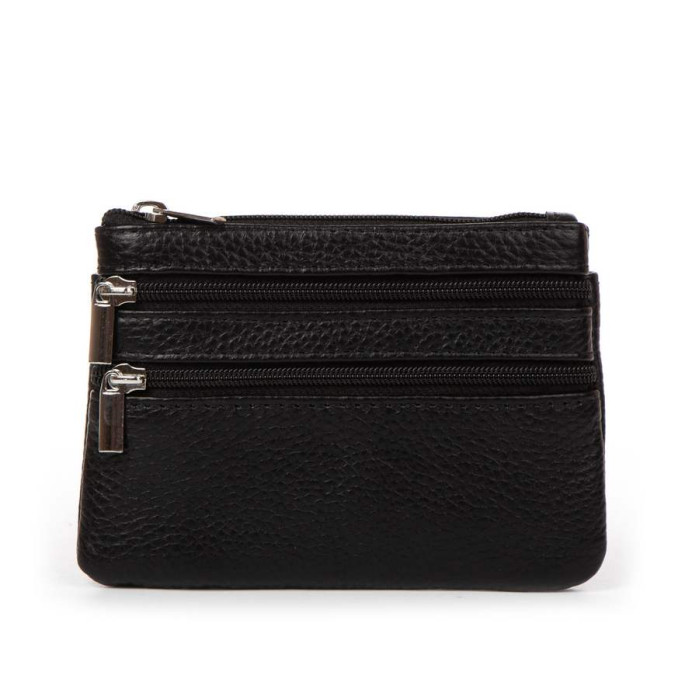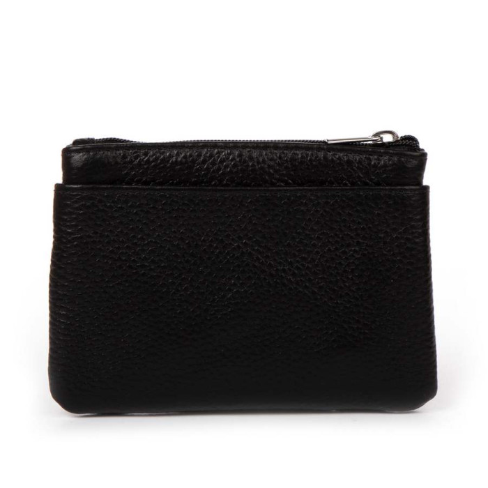 Жіноча шкіряна косметичка – ключниця. Одне відділення для ключів закривається на блискавку. На фасаді розташовані дві кишені на блискавці, а на звороті одна відкрита кишеня.