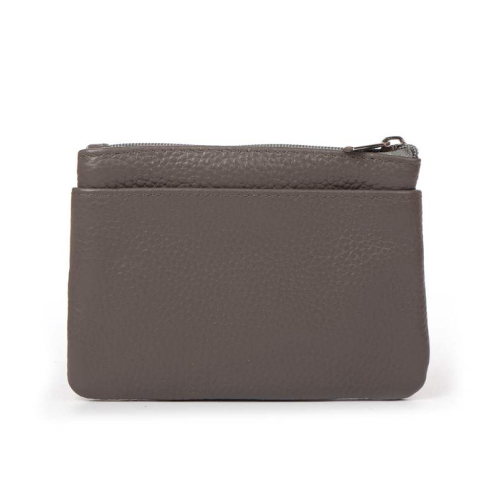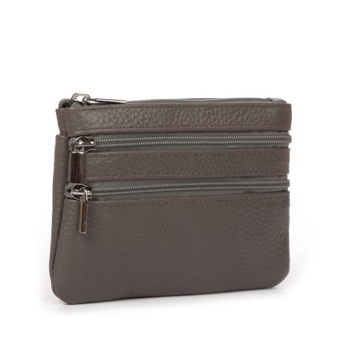 Жіноча шкіряна косметичка – ключниця. Одне відділення для ключів закривається на блискавку. На фасаді розташовані дві кишені на блискавці, а на звороті одна відкрита кишеня.