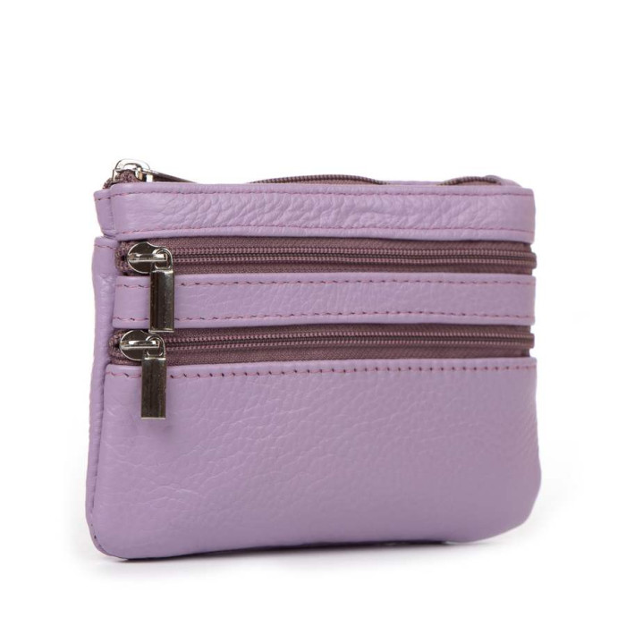 Жіноча шкіряна косметичка – ключниця. Одне відділення для ключів закривається на блискавку. На фасаді розташовані дві кишені на блискавці, а на звороті одна відкрита кишеня.