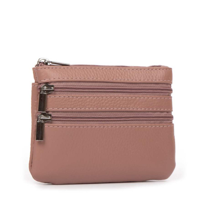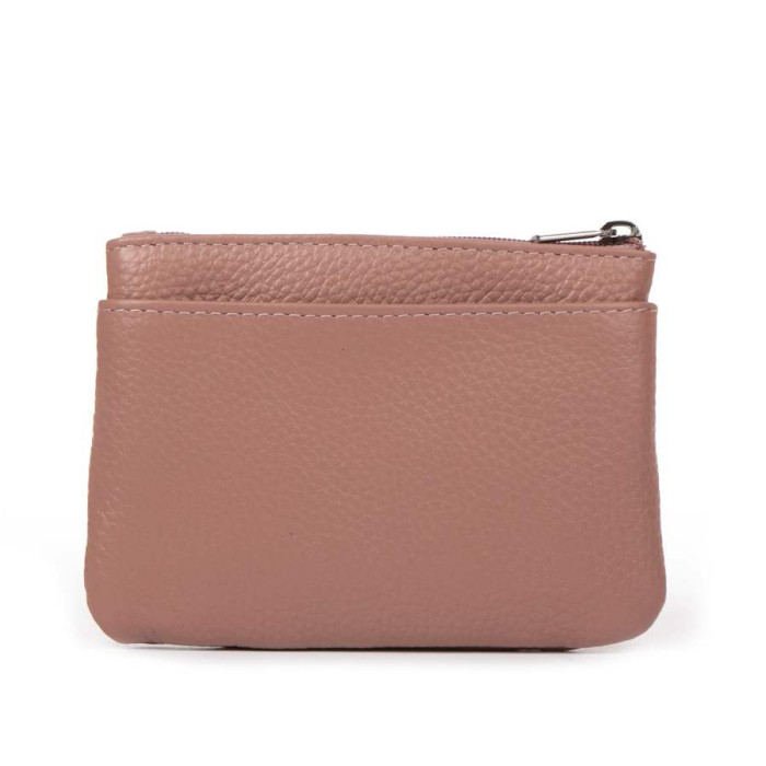 Жіноча шкіряна косметичка – ключниця. Одне відділення для ключів закривається на блискавку. На фасаді розташовані дві кишені на блискавці, а на звороті одна відкрита кишеня.