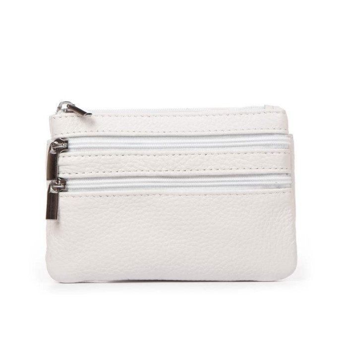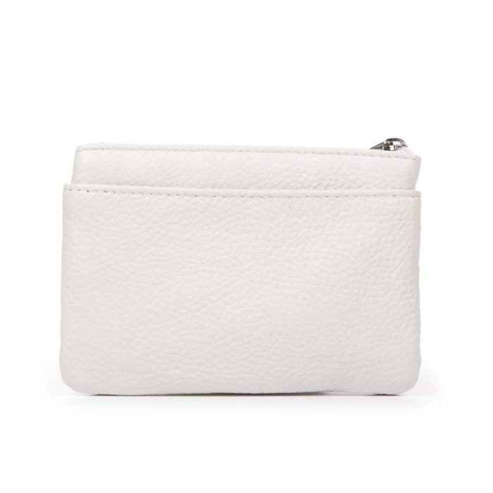 Жіноча шкіряна косметичка – ключниця. Одне відділення для ключів закривається на блискавку. На фасаді розташовані дві кишені на блискавці, а на звороті одна відкрита кишеня.