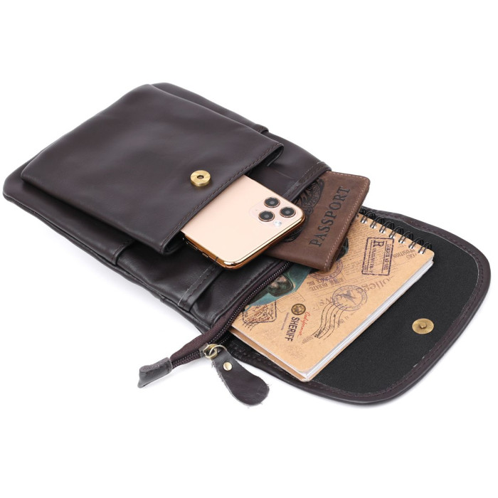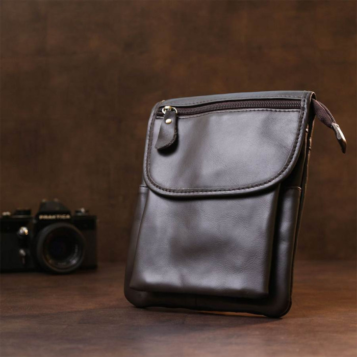Компактна оригінальна сумка у сучасному молодіжному дизайні та лаконічному стилі. Виконано виріб із натуральної висококласної шкіри підвищеної зносостійкості. Фактура аксесуара – гладка матова. Таку сумку можна дарувати дорогій людині на будь-яке свято.