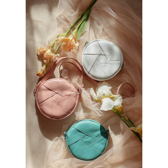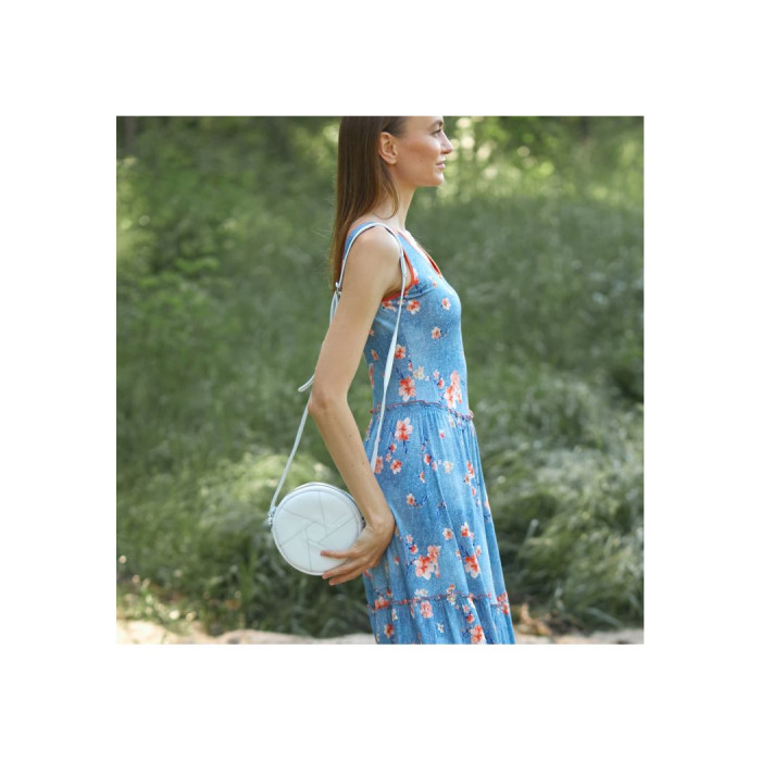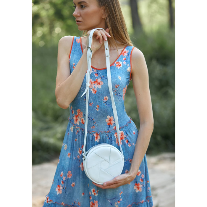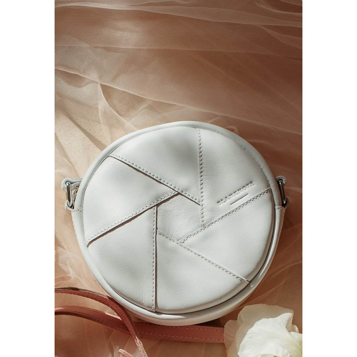 Невелика біла сумочка круглої форми з натуральної шкіри стане відмінною супутницею сучасної дівчини. Такий аксесуар буде доречний і з офісним костюмом, і з вечірньою сукнею. Сумка відмінно виглядатиме, як в тандемі з шифоном або велюром, так і в поєднанні з футболкою і джинсами.