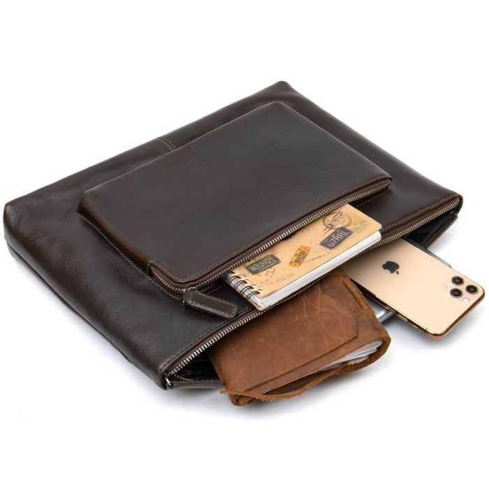 Добротна красива сумка для ноутбука в глянсовому коричневому кольорі. Виконана з натуральної високоякісної шкіри. Закривається сумка на міцну і надійну блискавку, всередині є містке основне відділення і відділення на липучці для ноутбука. Папери А4 з легкістю помістяться в даний аксесуар. Упакована сумка в красивий фірмовий чохол чорного кольору з ручками.