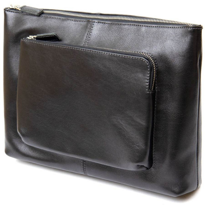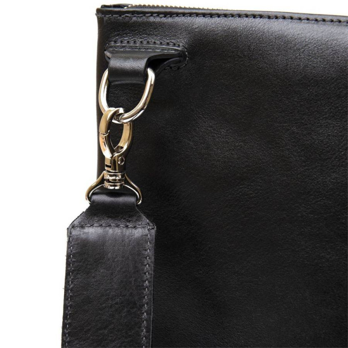 Відмінна сумка для ноутбука з натуральної шкіри високої якості. Фактура - глянцева гладка. Фурнітура срібного кольору, сама сумка чорна. Усередині дуже містке відділення, в яке помістяться паперу формату А4, блокноти, ручки і інша канцелярія. Відділення для ноутбука фіксується хлястиком з липучкою. На зовнішній стороні також присутня невелика практична кишеня на блискавці, застосування якої завжди знайдеться. Упакована сумка в фірмовий чохол.