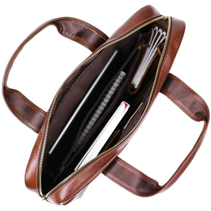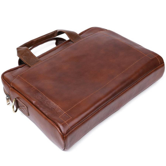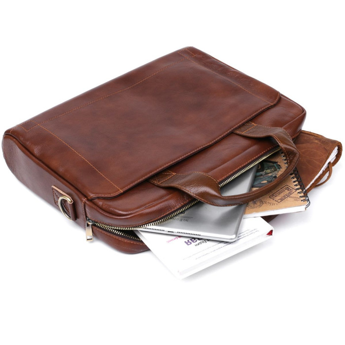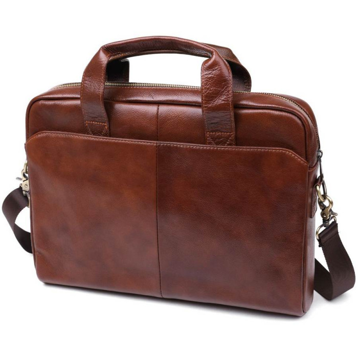 Добротна сумка-портфель для стильних та сучасних чоловіків. Виконано модель з натуральної висококласної шкіри, якість якої видно неозброєним оком. Фактура виробу – зерниста з легким блиском. Внутрішнє наповнення представлене просторим відділенням з додатковими кишенями, а також на зовнішніх сторонах передбачені додаткові кишені на кнопках.