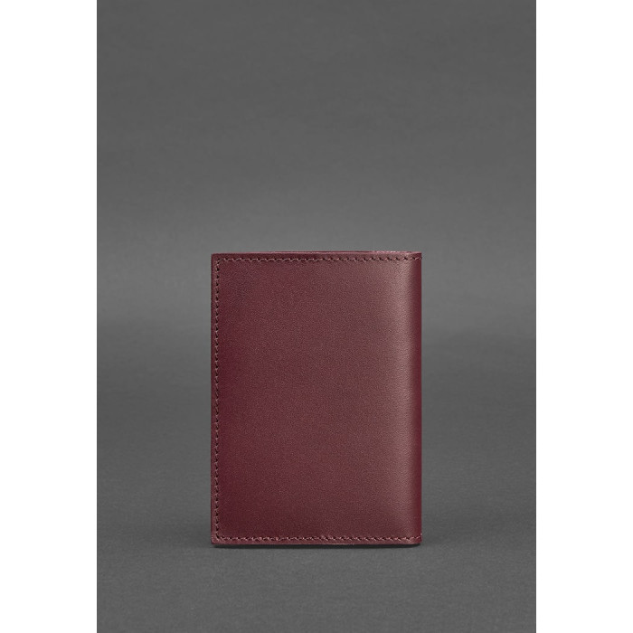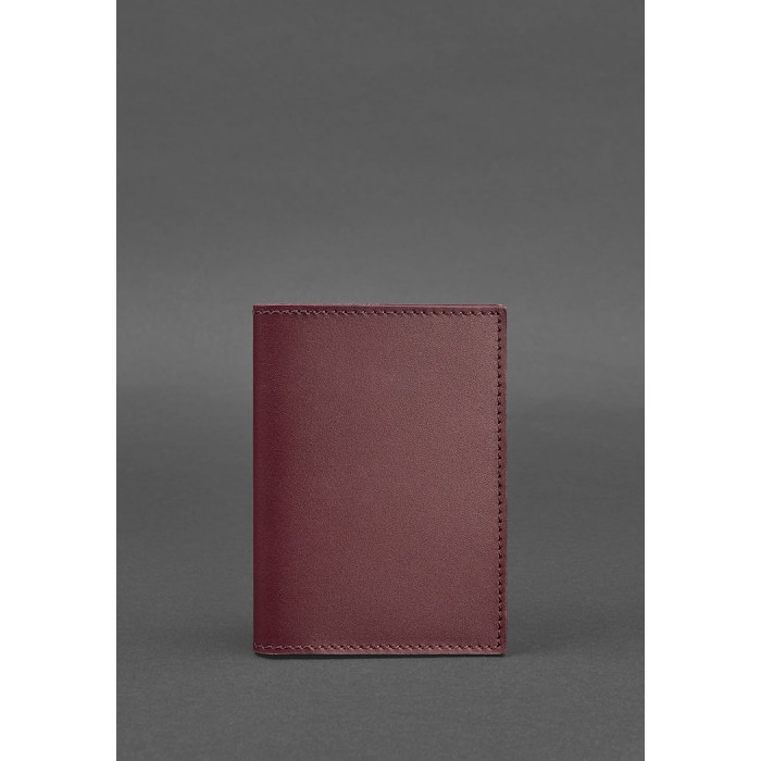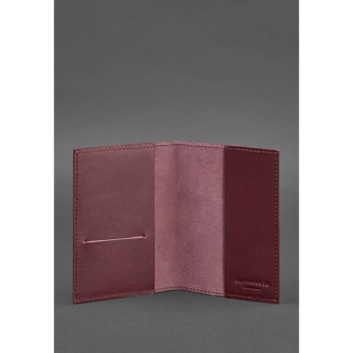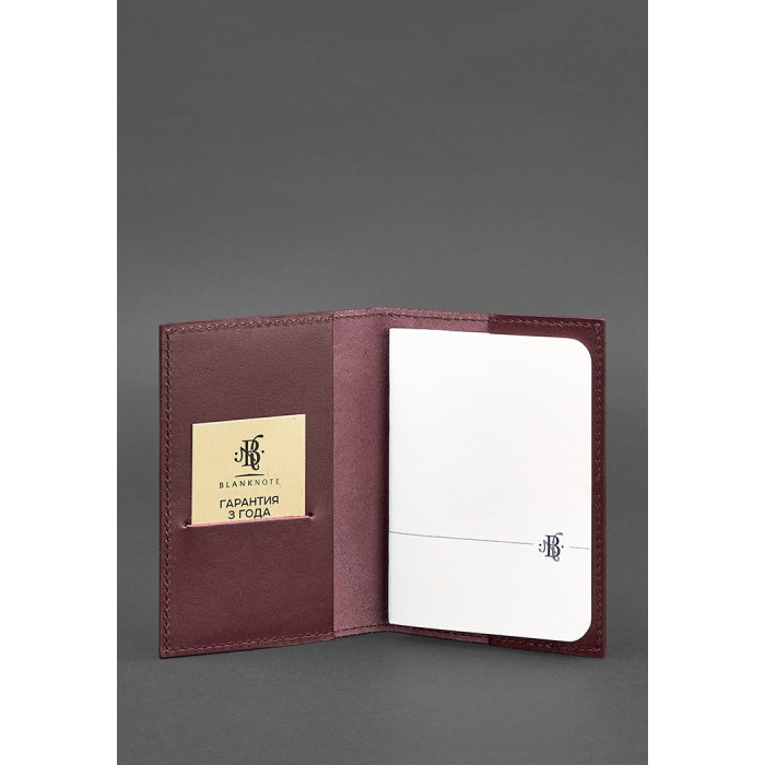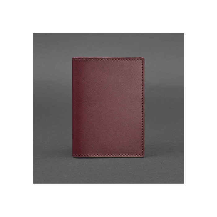 Аксесуар виконаний з натуральної шкіри кольору марсала, закривається за типом книжечки, без фіксації. По краях обкладинки передбачені шкіряні вставки, які надійно фіксують паспорт всередині. Одна з вставок має прорізну кишеню для картки, візитки або іншого документа. Цю обкладинку можна використовувати для закордонного, біометричного паспорта.