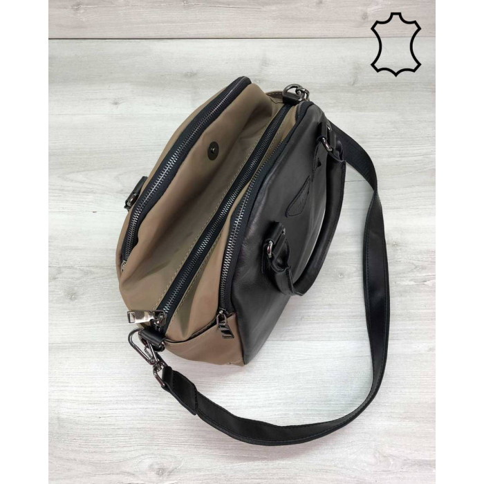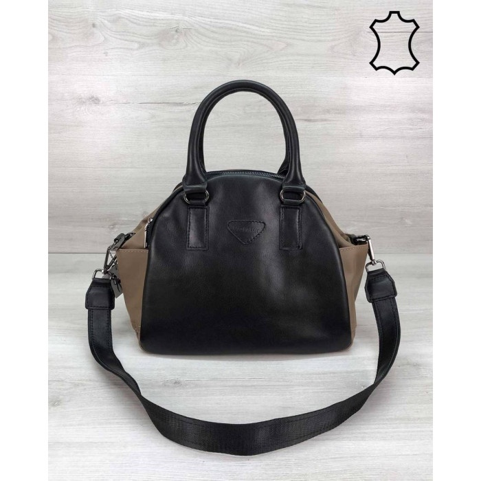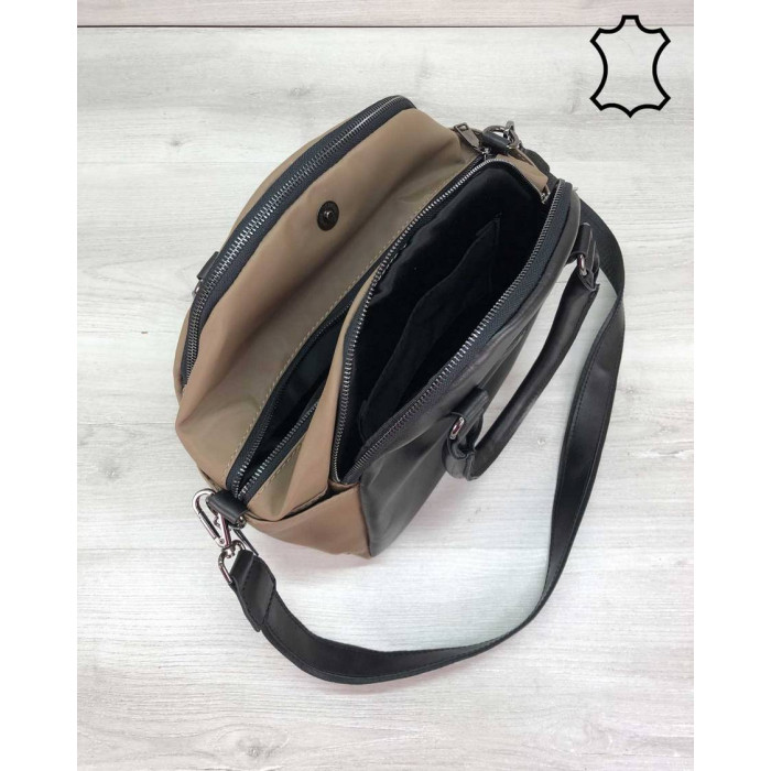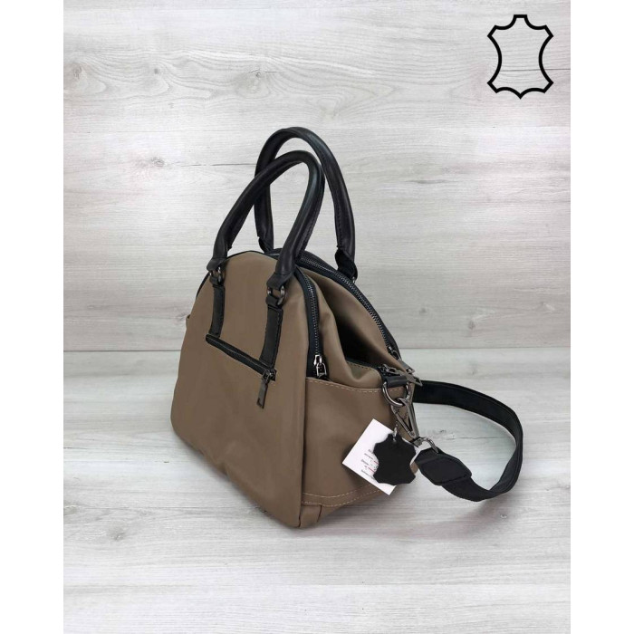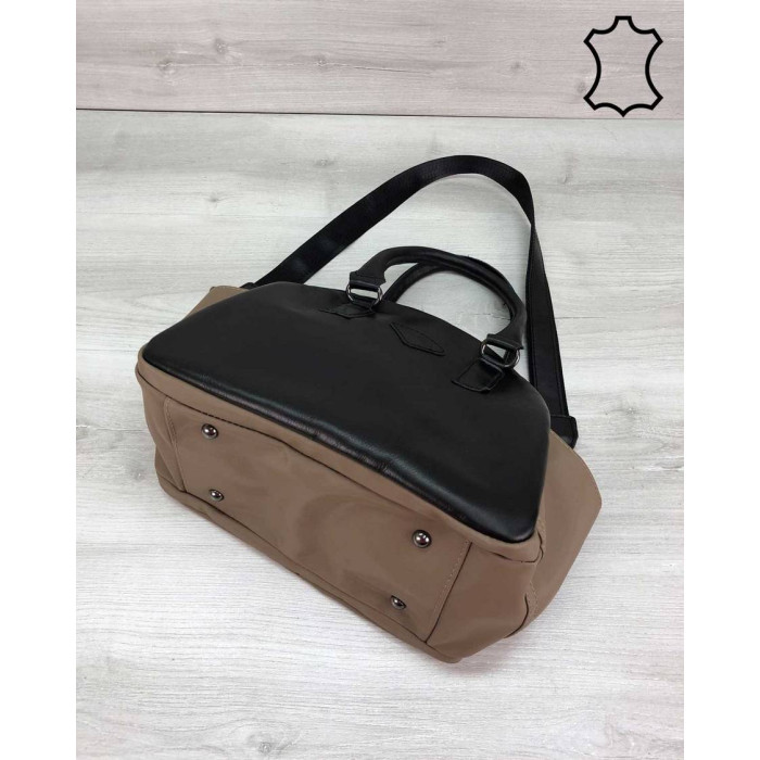 Стильна жіноча сумка "Elis" кавового кольору компанії WeLassie - це новий шедевр нашої фабрики. Передня частина ручки і вставочки виконані з високоякісної лицьової шкіри. Решта частини виконані з спеціальної водовідштовхувальної плащівки. Поєднання натуральної шкіри і тканини робить сумку еластичною, м'якою при будь-якій від'ємній температурі.