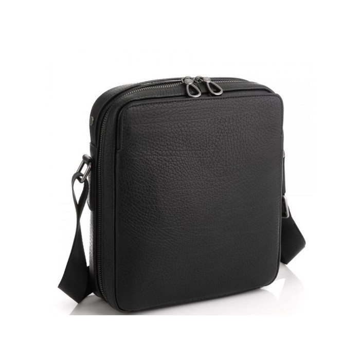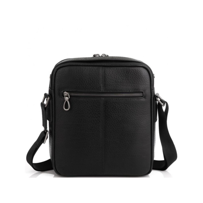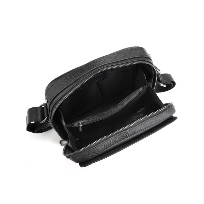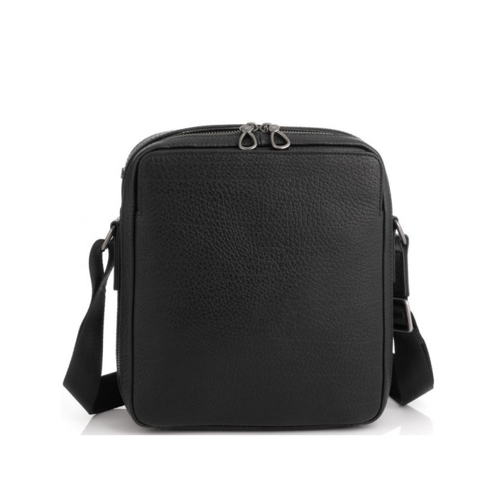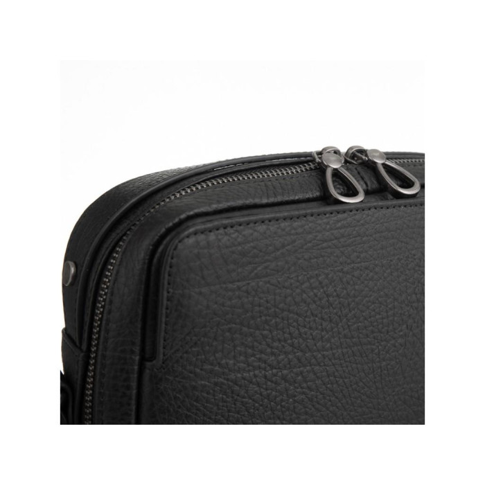 Класична чорна шкіряна сумка для чоловіків. Має крупно-зернисту текстуру. Пуллера в сумці металеві, для носіння є шкіряна ручка і плечовий текстильний ремінь. Сумка шкіряна оснащена одним великим основним відділенням, яке розділене кишенею-перегородкою на блискавці, також всередині відділення є дві кишені відкритого типу і одна кишеня на блискавці. З лицьового боку є кишеня відкритого типу на двох потайних магнітах, з тильного боку кишеня на блискавці.