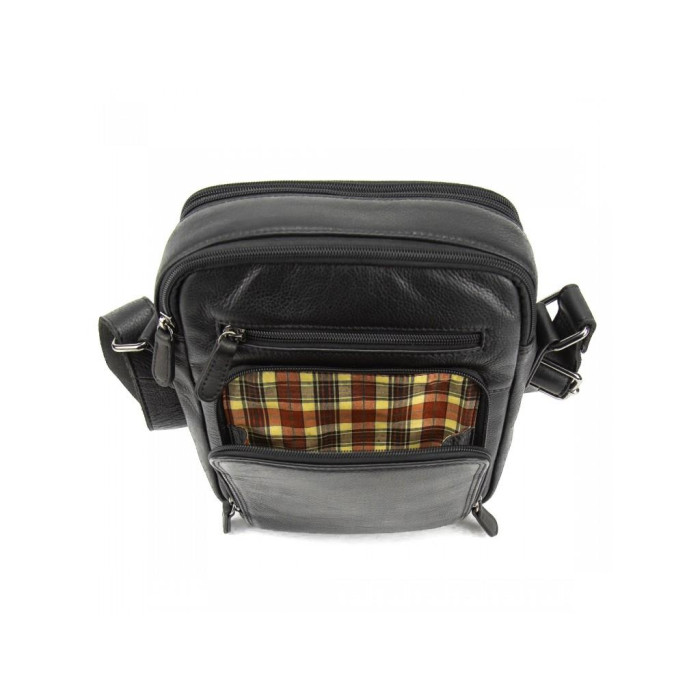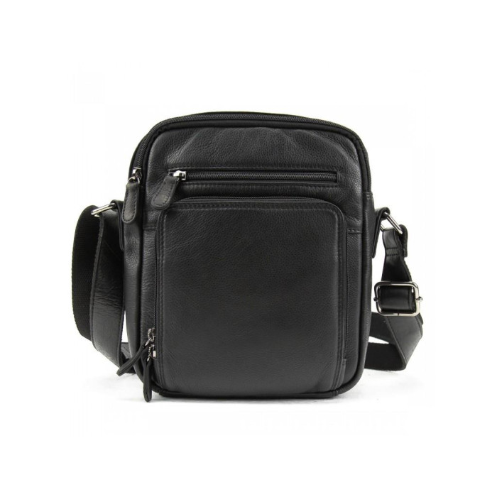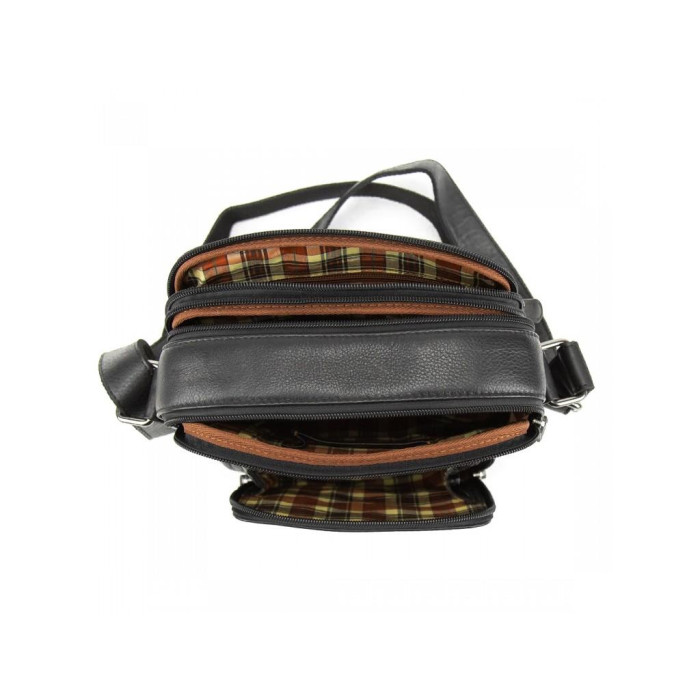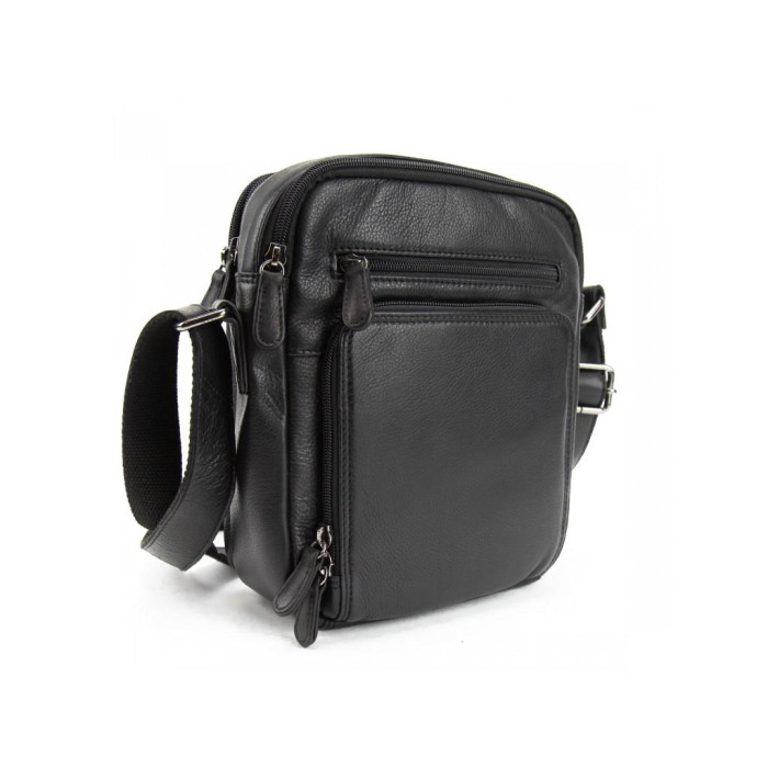 Шкіряна сумка через плече у чорному кольорі на три відділи Tavinchi R-1730A із натуральної шкіри.