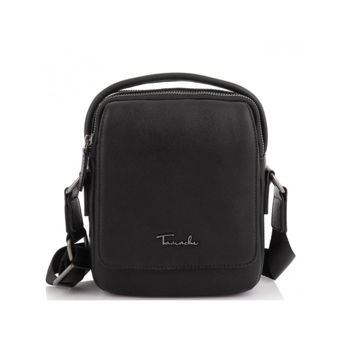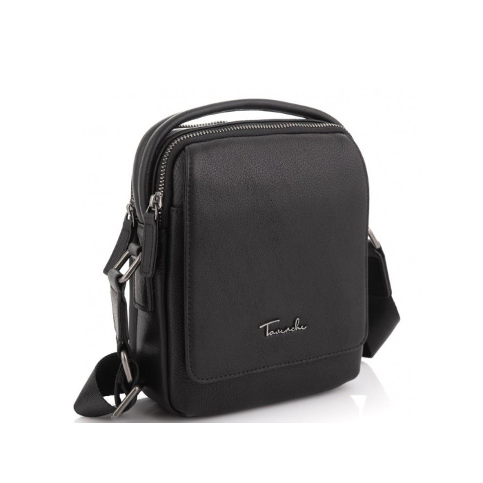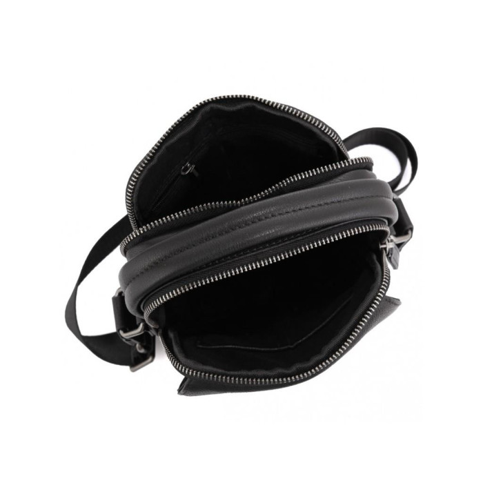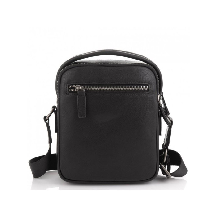 Класична шкіряна чорна чоловіча сумка з італійської шкіри. Оснащена шкіряними пуллерами, текстильним плечовим ременем, який регулюється по довжині і шкіряною ручкою для носіння в руці. Чоловіча сумка має два основних відділення. З лицьового боку відділення відкритого типу, яке накривається клапаном на магнітній кнопці. З тильного боку кишеня на блискавці горизонтального типу. Усередині сумки кишені для дрібниць.