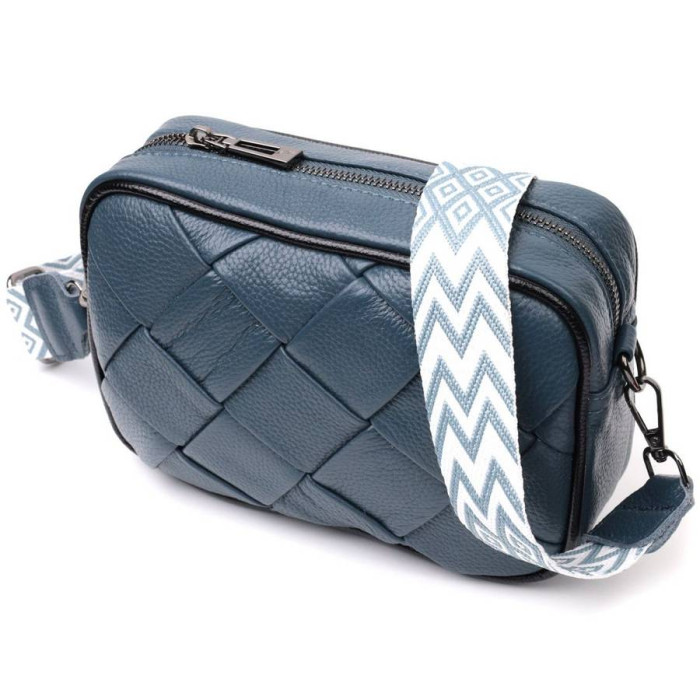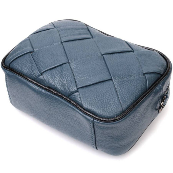 Модна жіноча сумка з ромбоподібною палітуркою на лицьовій стороні. Виріб пошитий з якісної натуральної шкіри, яка довго носиться і не втрачає свого первісного вигляду. Аксесуар складається з одного основного відділення всередині якого розташована кишеня відкритого типу і кишеня на блискавці, також зовні розташована кишеня на блискавці, на тильній стороні. Носити сумку можна в руці як клатч, на плечі та через плече, для цього є текстильний ремінь, що знімається. У виробі використано якісну фурнітуру кольору темного срібла. Універсальний варіант сумки як на вечір так і як сумочка на кожен день.