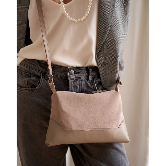 Шкіряна жіноча сумка K71259 від виробника «Welassie» Україна, колір бежевий, матеріал натуральна шкіра. Сумка відкривається за допомогою блискавки. Усередині сумка має відкриту кишеню та на застібці.