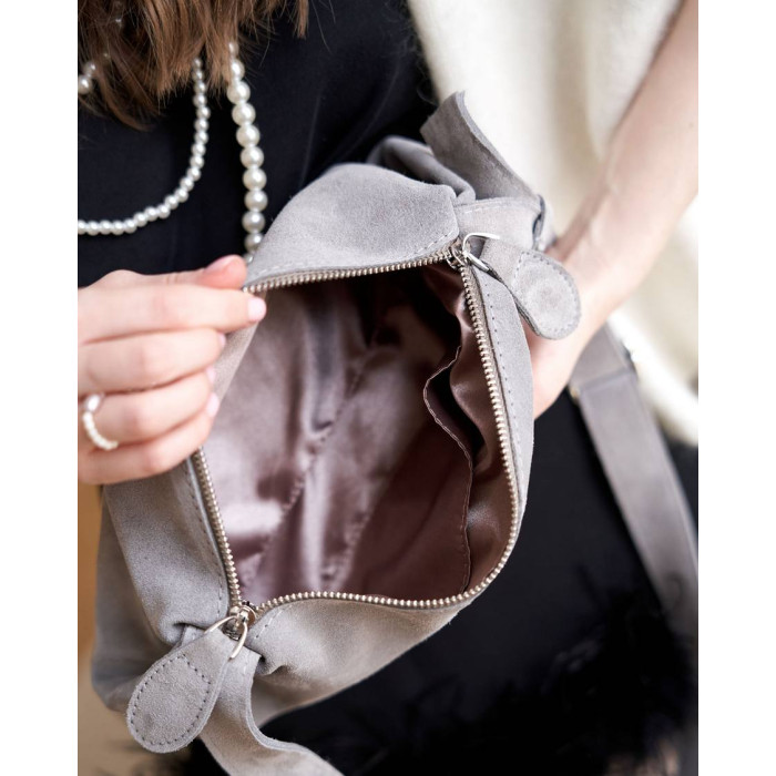Шкіряна жіноча сумка К69958 від виробника «Welassie» Україна, колір сірий, матеріал натуральна шкіра. Сумка відкривається за допомогою блискавки. Усередині сумка має одну відкриту кишеню. Плечовий ремінь шириною 3см регулюється під різну довжину.